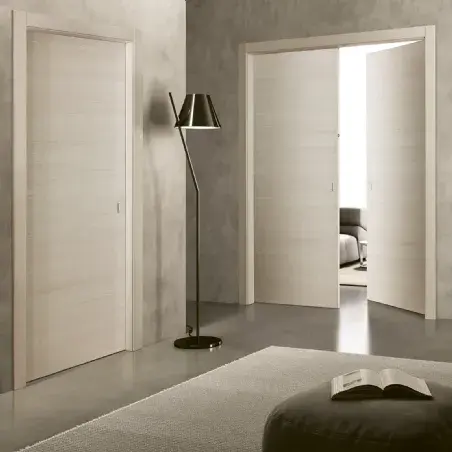 Tutte le porte interne Albaporte sono compatibili con diversi sistemi di apertura: battente, scorrevole interno o esterno muro, a libro o a bilico.